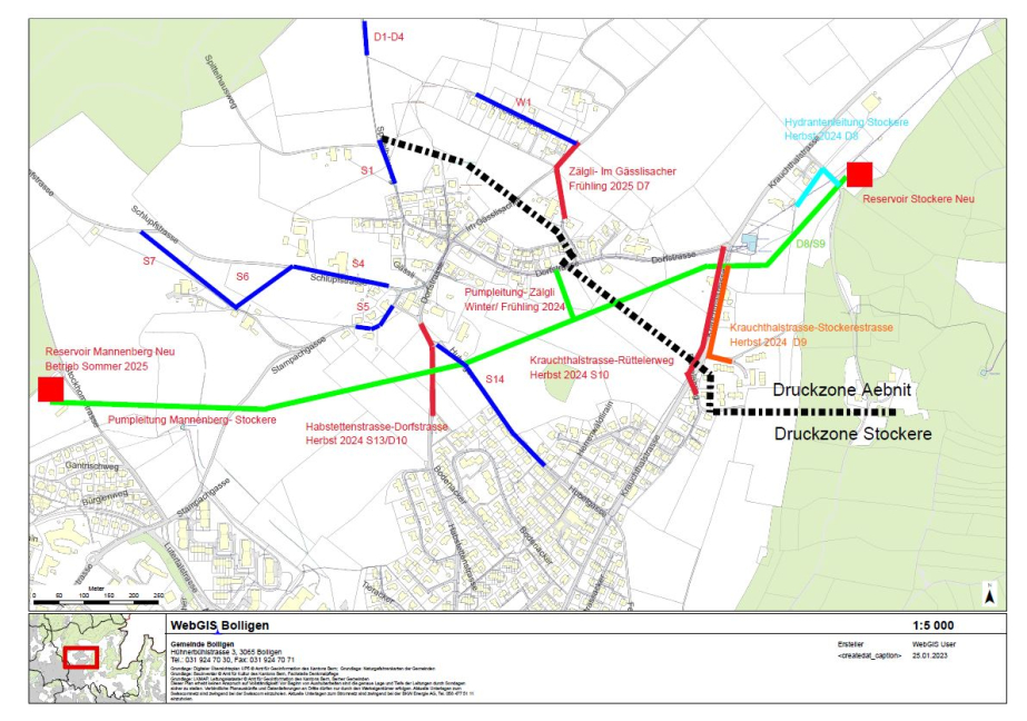 Da die Verbindungsleitungen zu den neuen Wasserreservoiren und den neuen Leitungen der WVRB AG bis spätestens Mitte 2025 gebaut werden müssen, besteht bei diversen Projekten ein besonders hoher Zeitdruck.
