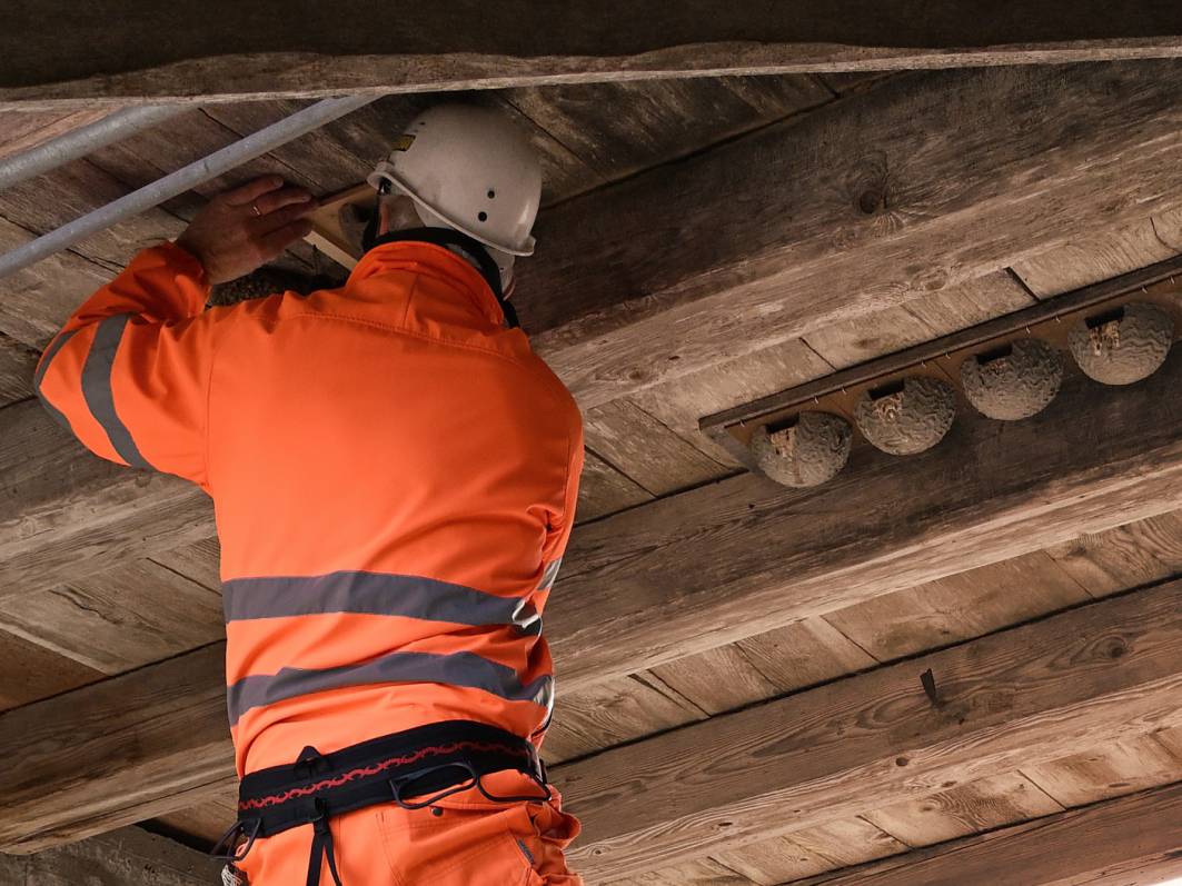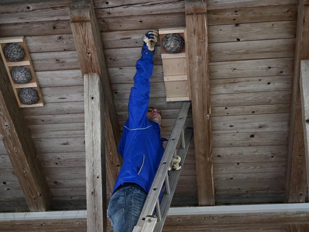 Nachdem das Vogelinventar Team von NUBIS im vergangenen Frühjahr bereits im Weiler Flugbrunnen an verschiedenen Bauernhäusern zahlreiche Schwalbennisthilfen montierte, wurden in diesem Jahr weitere bestehende Brutplätze an verschiedenen Standorten mit insgesamt 50 neuen Nestern ergänzt. Denn auch bei Landwirten in den Weilern Geristein, Bantigen und Ferenberg sind Schwalben gern gesehene Sommergäste und die Bauern sind bereit, an ihren Häusern zusätzliche Nester anzubringen. Damit helfen sie mit, insbesondere Mehlschwalben zu fördern, deren Bestände in der Schweiz leider seit den letzten Jahrzehnten rückläufig sind.